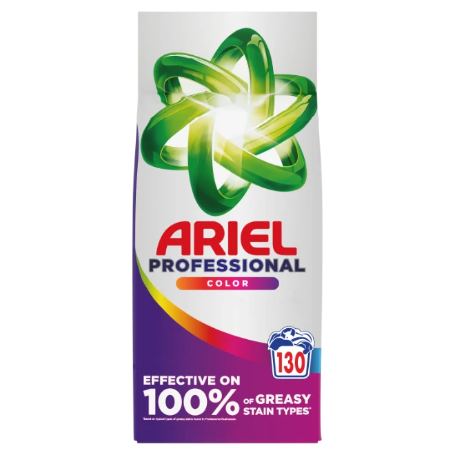 Prací prášek Ariel Professional Color je navržený speciálně pro profesionální použití. Výborně čistí a odstraňuje skvrny, které jsou typické pro profesionální provozy. Je vyvinutý tak, aby dosahoval vynikajících výsledků už při prvním praní bez nutnosti namáčení nebo předpírky. Uchovává barvy syté i po mnoha praních a zároveň dodá prádlu příjemnou svěží vůni. Je účinný při praní už při teplotě 20 °C, neobsahuje fosfáty.