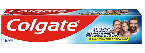Zubní pasta Colgate® Cavity Protection s obsahem fluoridu a vápníku se dostane i do těžko dostupných míst a poskytne tak špičkovou ochranu proti zubnímu kazu. Klinicky prokázaná pomoc pro silnější zuby a posílení slabých míst na zubní sklovině. Mátová příchuť, osvěžuje dech a zajišťuje bělejší zuby.