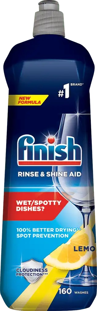 Finish Leštidlo Shine&Dry Lemon ideální prostředek na sklo a nádobí beze skvrn, které září diamantovým leskem. Účinkuje při oplachování a napomáhá odstranit jak mycí prostředek tak zbytky jídla z nádobí.