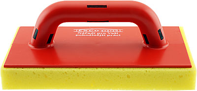 Hladítko s nařezanou mořskou houbou. Hladítko k nanášení lepidel pod obklady a dlažby, stěrek, štuků, omítek atd.