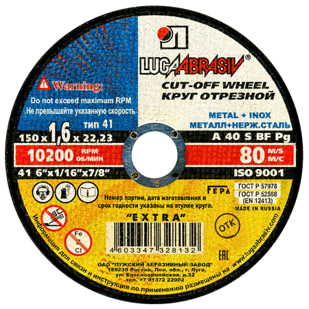 Kotouč řezný LUGA ABRASIV 150 x 1,6 x 22Skladem22 Kč/ ks18 Kč bez DPH