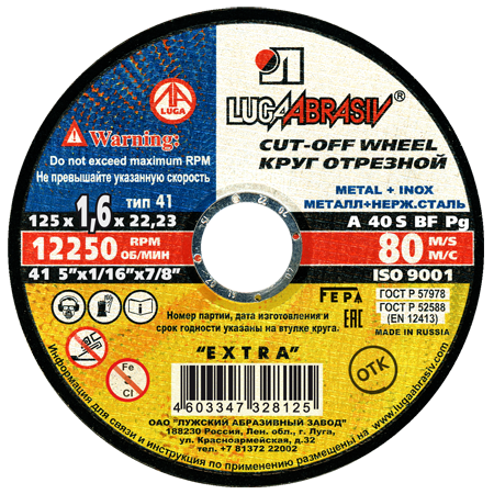 Kotouč řezný LUGA ABRASIV 125 x 1,6 x 22