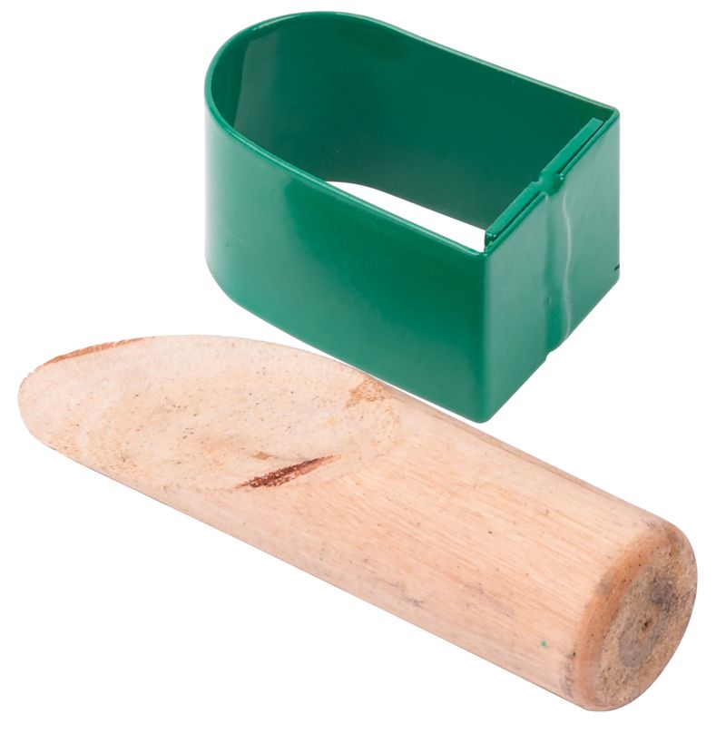 Klínek slouží k přichycení kosy ke kosišti (násadě). Kovová objímka na kosu s dřevěným klínkem na zajištění.