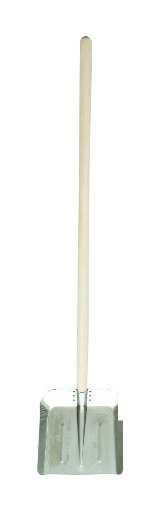 Hliníková lopata velká o síle 2,0 mm s dřevěnou násadou.