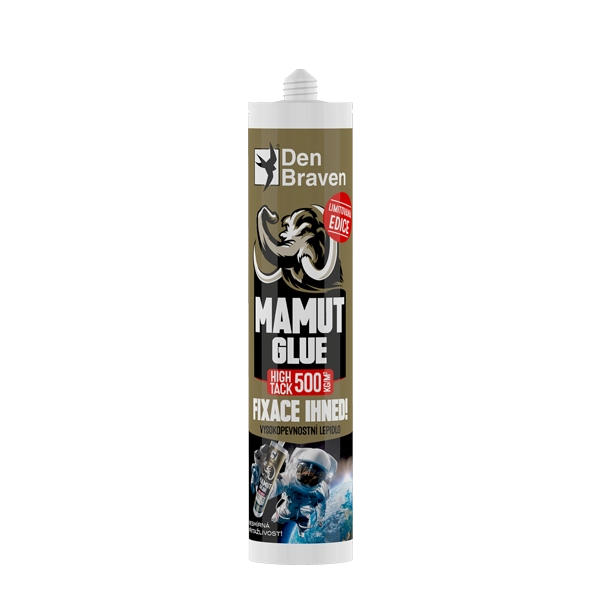 Jeho největší výhodou je okamžitá fixace 500 kg/m2. Využijete ho všude tam, kde potřebujete něco rychle přilepit a nemůžete předmět z jakýchkoliv důvodů zatížit, než lepidlo vytvrdne. S tím souvisí jeho tužší konzistence. Lepidlo MAMUT GLUE High Tack nahrazuje hřebíky, šrouby a nýty. Jedná se o speciální modifikaci MS polymerů, vytvářející po vytvrzení přetíratelný vysokopevnostní a elastický spoj. Není agresívní k podkladům, je ideální pro lepení zrcadel.