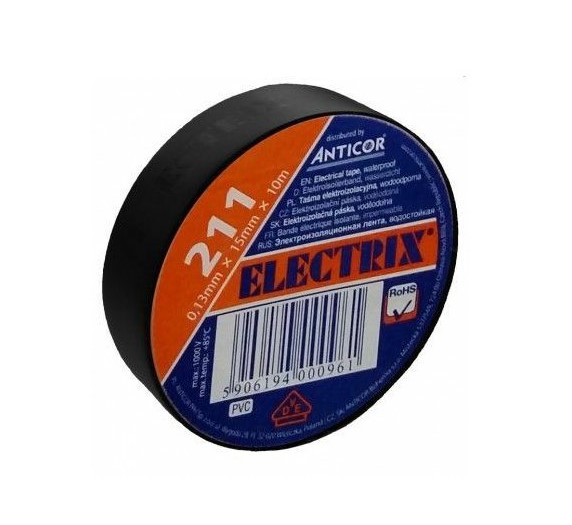 Páska izolační PVC 15 mm x 10 m ČernáSkladem8 Kč/ ks7 Kč bez DPH