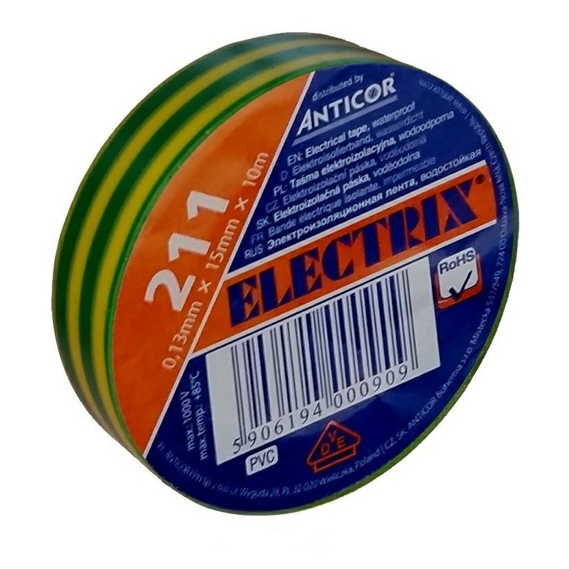 Páska izolační PVC 15 mm x 10 m Zeleno-ŽlutáSkladem8 Kč/ ks7 Kč bez DPH