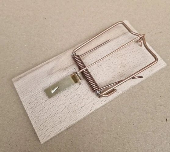 Na návnadový plíšek napíchněte návnadu (ořech, sýr, kousek špeku, chlebovou kůrku), past natáhněte a zajistěte. Jakmile se hlodavec návnady dotkne, rámeček sklapovacího mechanismu způsobí okamžité usmrcení.