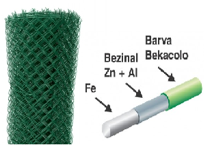 Drát je vyroben z pevného žárově zinkovaného ocelového drátu, na kterém je nanesen ZINEK s minimem 10% podílem HLINÍKU v povlaku. Na drát je dále nanesena tenká vrstva zelené barvy.