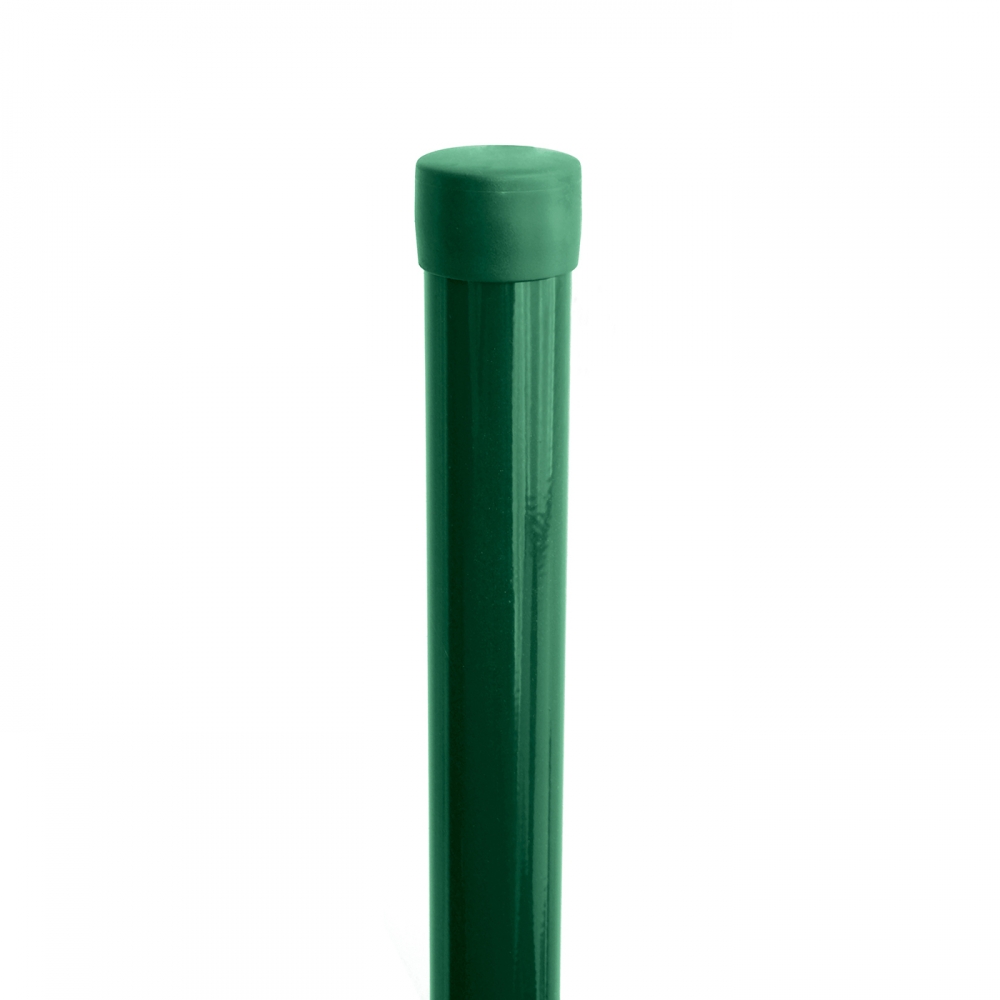 Kulatý plotový sloupek s čepičkou. Součástí není příchytka napínacího drátů.