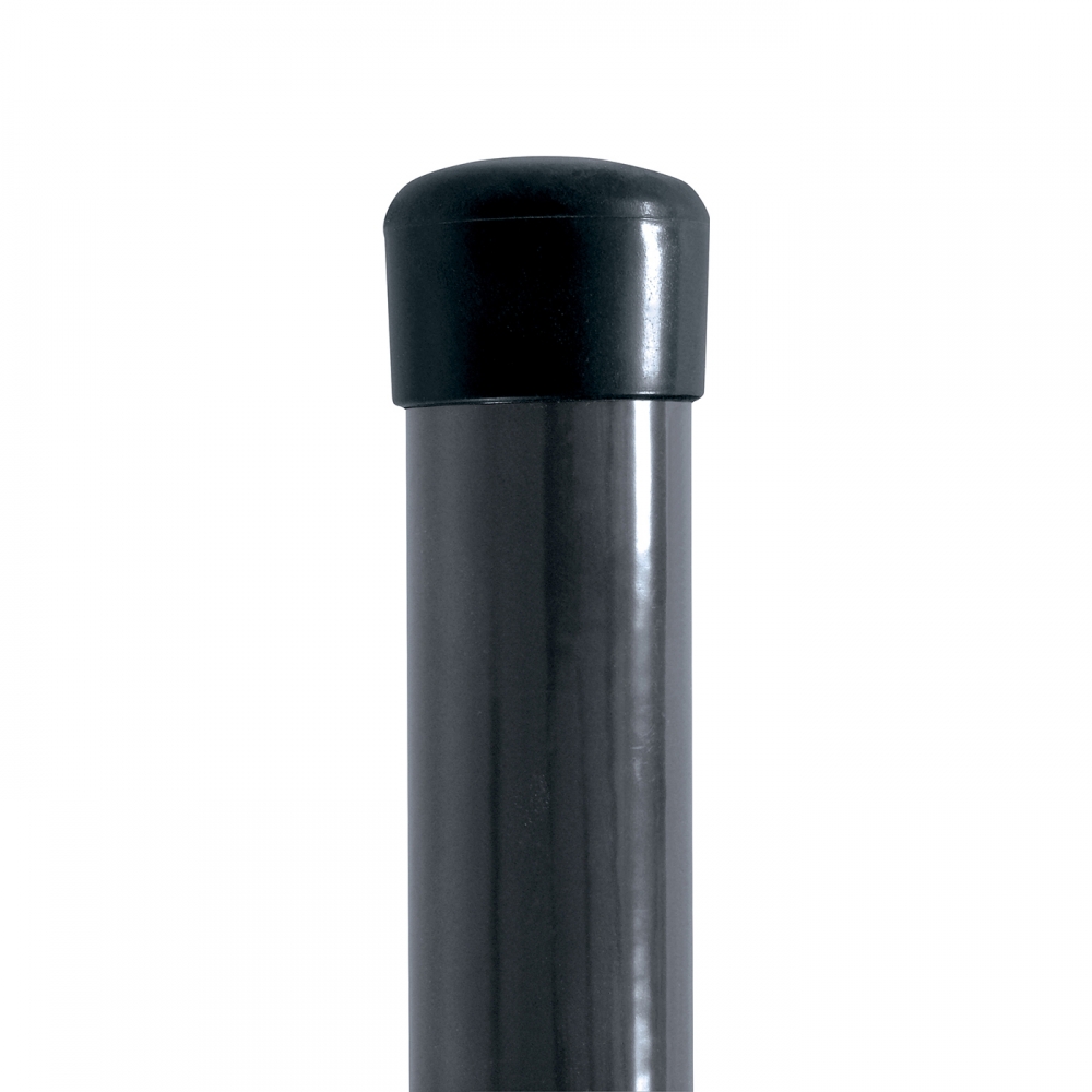Kulatý plotový sloupek s čepičkou. Součástí není příchytka napínacího drátů.