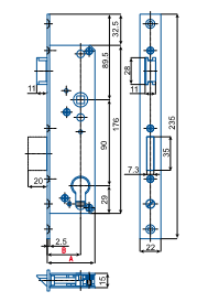 Zámek zadlabávací jednozápadový s převodem.