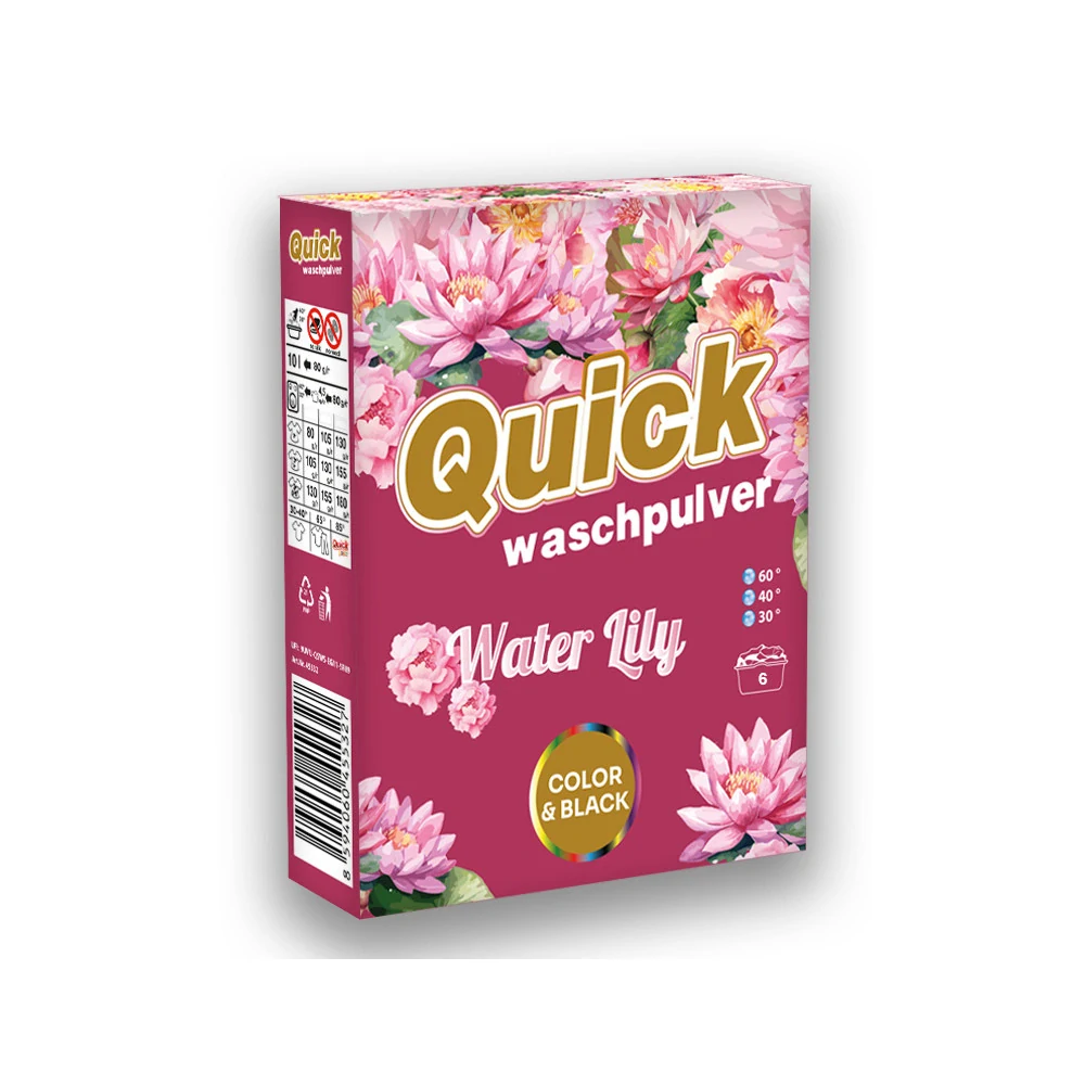 Quick color water lilly je prací prostředek se speciálním složením a vlastnostmi, vhodný pro barevné tkaniny a černé tkaniny, které jsou po opakovaném použití ještě jasnější a zářivější.