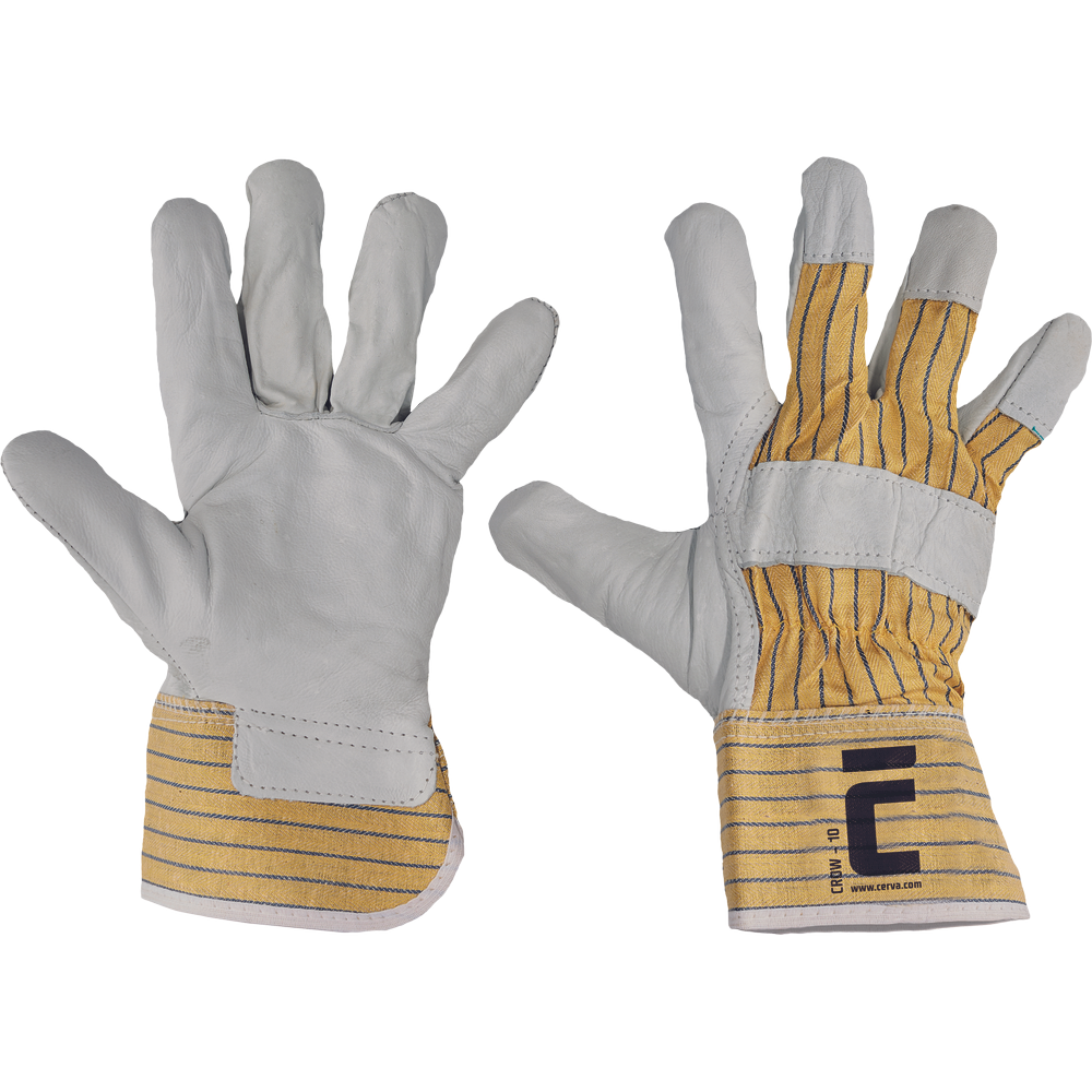 Rukavice z lícové hověziny v dlani s podšívkou a z bavlněné tkaniny na hřbetu a manžetě. Splňují normy EN ISO 21420 a EN 388 (2121X).
