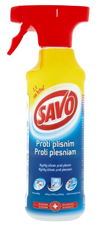 SAVO proti plísním je tekutý přípravek ve spreji na odstranění plísní, hub, lišejníků a kvasinek v celé domácnosti s okamžitým účinkem, viditelným efektem a dezinfekčními účinky.