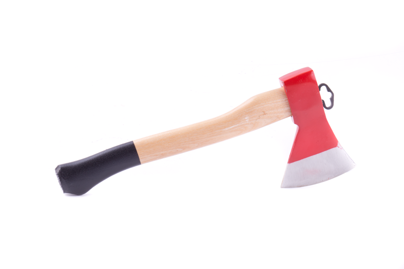 Červená sekera Adler s dřevěnou rukojetí.
