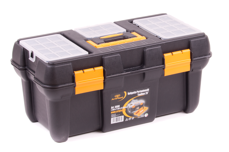 Plastová skříňka s uzavíráním. Disponuje organizéry na spojovací materiál ve víku a uvnitř praktický příruční pořadač.