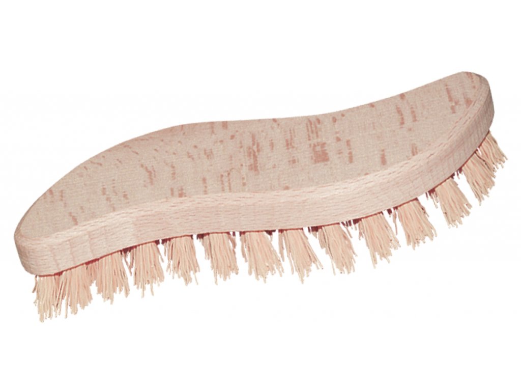 Dřevěný kartáč o délce 20 cm, vlnitá syntetická vlákna.