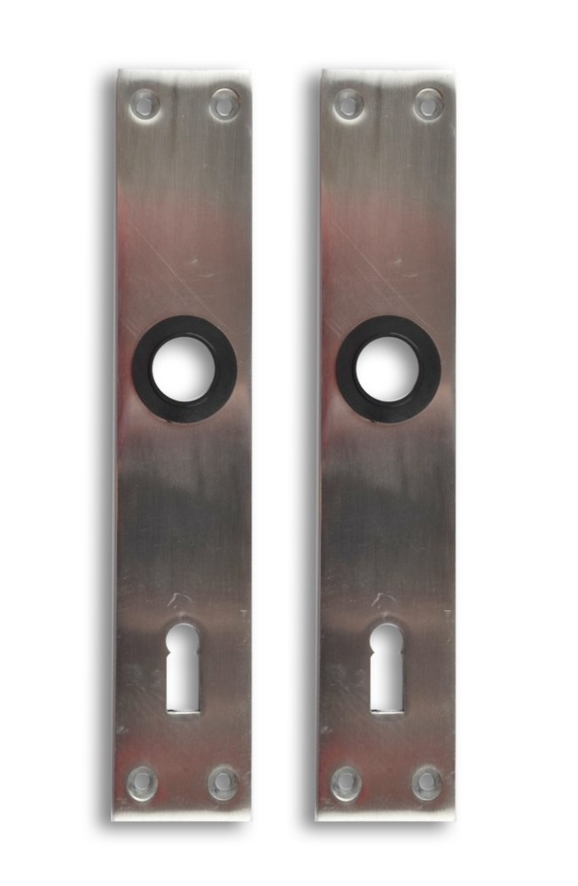 Dveřní štít pro obyčejný klíč K416, rozteč osa zámek - klika 72 mm. Materiál hliník, leštěný na vysoký lesk. Uložení kliky v plastovém kruhovém pouzdru. Cena je za jeden pár štítů.