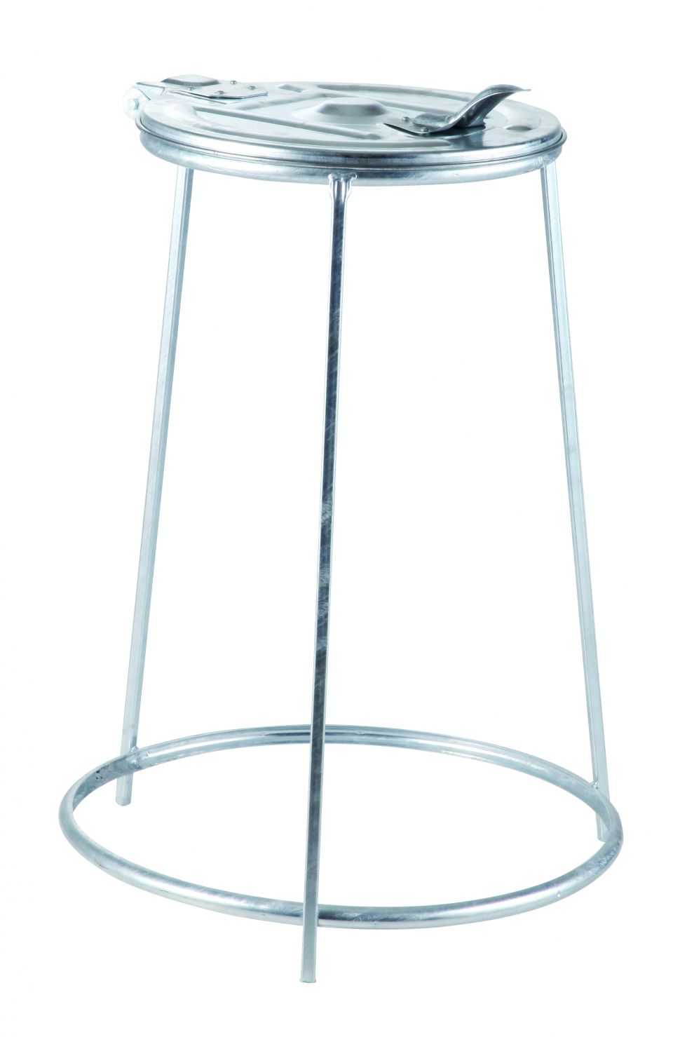 Ocelový pozinkovaný stojan s víkem pro upevnění pytle o objemu 120 l. Vyrobeno z žárově pozinkovaného ocelového plechu jakostní třídy 11.