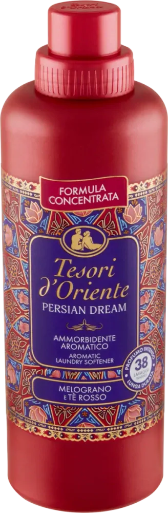 Tesori d´Oriente aviváž na prádlo Persian dream zanechá vaše prádlo krásně parfémované a měkké. Smyslné tóny jasmínu, sladké a kořeněné tóny granátového jablka se prolínají s vůní červeného čaje a dodají vašemu prádlu okouzlující květinovou vůni. Zároveň je obohacená i o vzácné mikrokapsle parfému. Její krémové složení bez syntetických barviv uvolňuje tkaniny a usnadňuje žehlení. Vyzkoušejte Tesori d´Oriente aviváž na prádlo Persian dream, která k vám vnese pohodu a harmonii.