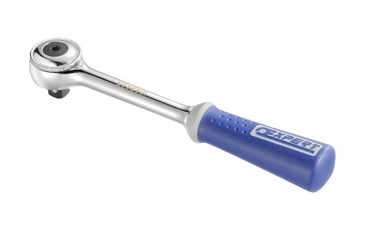 Tona Expert ráčna 1/2" s přepínacím kolečkem 250 mm. Ráčnový mechanismus se 72 zuby. Délka kroku zpětného chodu ráčny je 5 stupňů. Kompaktní hlava. Provedení lesklý chrom. Kvalitní ergonomická bimateriální rukojeť.