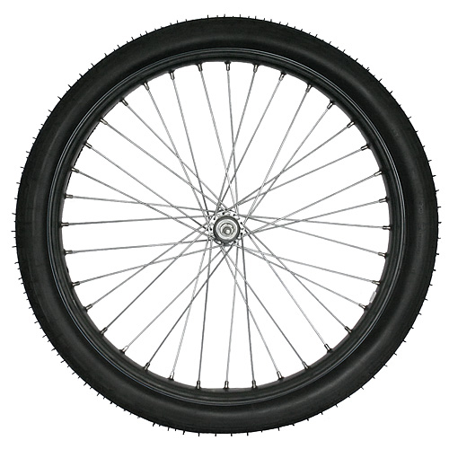 Kolo obuté 2,25x1/4" vyplétané ocelovými špicemi duše + plášť 21/4-19. Vnější průměr kola 60 cm.