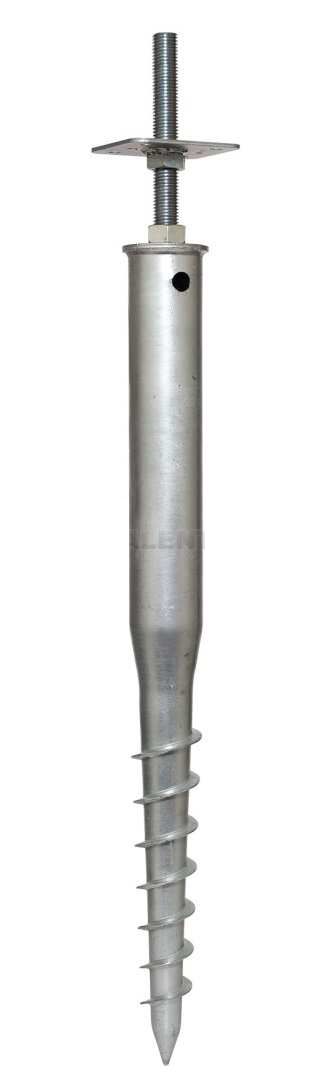 Zemní vruty s výškově stavitelnou patkou pilíře pro výstavbu pergol, přístřešků, plotů, zahradních staveb a dřevostaveb. Tento typ vrutů poskytuje větší komfort při při montáži, výškové rozdíly po zavrtání do země je možné doladit díky výškově stavitelné desce na závitové tyči.