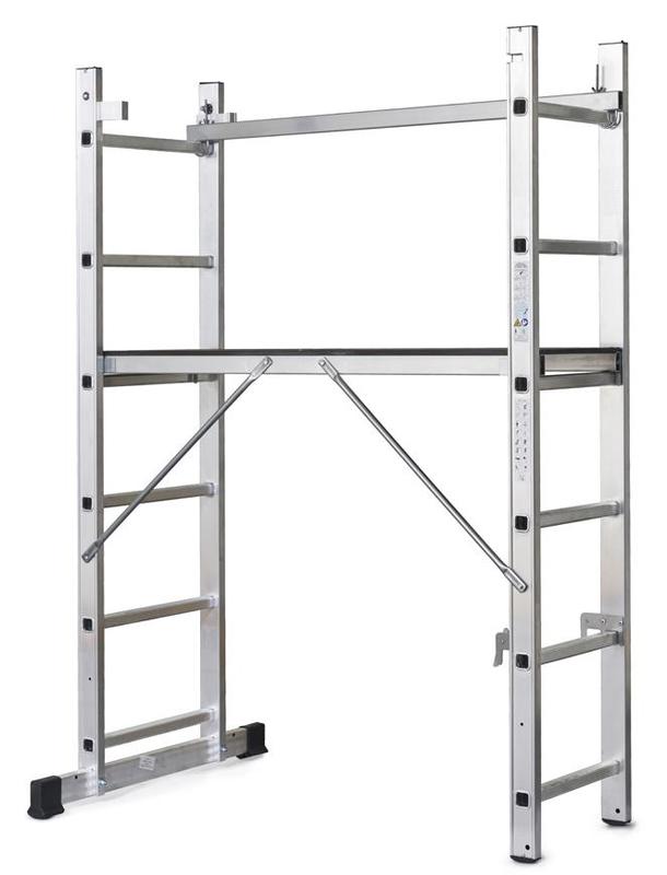 S lešením lze pohodlně manipulovat díky lehké hliníkové konstrukci. Po demontáži mohou být komponenty použity jako žebřík.